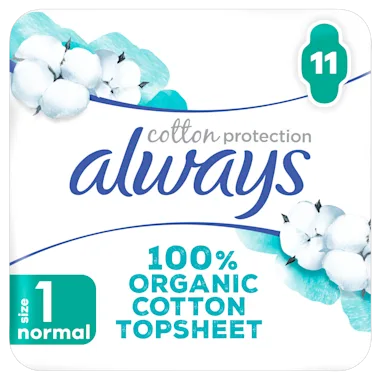 Always Always Cotton Protection maandverband zorgt voor jou en het milieu met een toplaag van 100% biologisch katoen in een recyclebare papieren verpakking. Het maandverband bevat geen parfum, geen kleurstoffen en geen chloorbleekmiddelen. Het maandverband is goedgekeurd door dermatologen van SHA (Skin Health Alliance) en gecertificeerd door Cotton Inc. Hun ultra absorberende kern zet vocht om in gel om je de vertrouwde Always bescherming te bieden Always Cotton Protection maandverbanden Normal zijn ideaal voor een lichte menstruatie met lingeriemaat S en M of voor een gemiddelde menstruatie met lingeriemaat S.