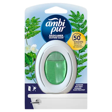 Onze eerste niet-elektrische luchtverfrisser voor badkamer & toilet elimineert onophoudelijk niet alleen geuren uit de lucht, maar voorkomt ook dat ze op zachte oppervlakken zoals handdoeken, badmatten of douchegordijnen blijven hangen. Ambi Pur Badkamer maakt gebruik van de unieke Odour ClearTM-technologie en levert tot 50 dagen lang continue frisheid, zodat uw badkamer altijd klaar is voor gasten. Ambi Pur Badkamer & Toilet gebruikt geen elektriciteit of batterijen, is handig en gebruiksvriendelijk, en is beschikbaar in verschillende geuren.