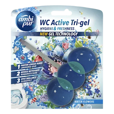 Verwijder verpakking - gooi deze in de prullenbak. Hang het toiletblok over de rand van het toilet, zodat het blok in contact komt met water bij het doorspoelen.