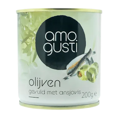 Ingrediënten: water, Manzanilla olijven 38,46%, ansjovis vulling (water, ANSJOVIS (VIS)) 4,04%, geleermiddel: natriumalginaat, zout, smaakversterker: mononatriumglutamaat, zuurteregelaar: melkzuur en citroenzuur, antioxidant: ascorbinezuur. Kan sporen van pit bevatten.
