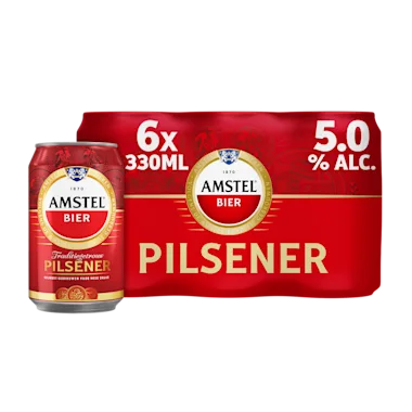 Amstel bier wordt sinds 1870 met liefde gebrouwen voor al die onvergetelijke momenten in het leven. Amstel Pilsener is een volmout bier en wordt gebrouwen met natuurlijke ingrediënten. Het resultaat is een helder goudgeel bier met een volle, toegankelijke smaak en een stevige schuimkraag. Het perfecte bier om van te genieten en te delen met vrienden.