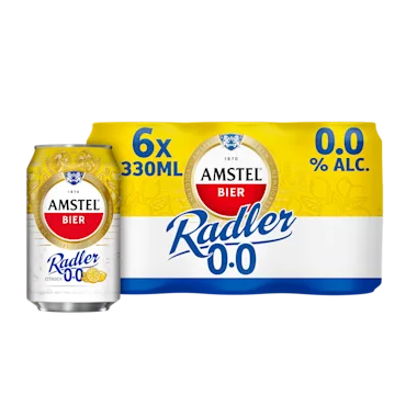 Amstel Radler 0.0% Amstel Radler 0.0% is de dorstlessende mix van alcoholvrij Amstel bier en citroenwater. Lekker verfrissend op elk moment van de dag.