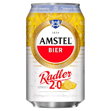 Amstel Radler 2.0% Amstel Radler citroen is een natuurlijke mix van Amstel bier en sprankelend citroenwater. Amstel Radler is dubbel verfrissend en bevat 2% alcohol. Lekker voor na het sporten of een andere inspanning.
