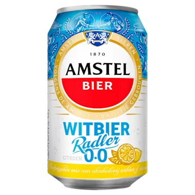 Amstel Witbier Radler 0.0% Amstel Witbier Radler 0.0 is een heerlijke, verfrissende mix van witbier met citroensap. Het heeft de karakteristieke, zachte smaak van witbier en is bovendien laag in suikers. De fruitige geur maakt het biertje een heerlijke, frisse verrassing. Bestel er gerust twee; door de frisse witbier smaak is Amstel Witbier Radler 0.0 namelijk heerlijk doordrinkbaar.