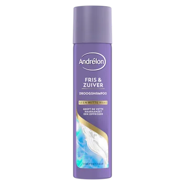 Andrélon Fris & Zuiver Droogshampoo is dé oplossing om je haar een verfrissende boost te geven zonder witte waas achter te laten, wanneer je maar wilt en waar je ook bent! Om zonder je haren te wassen toch een frisse look te krijgen, heeft Andrélon dit haarproduct tegen vet haar ontwikkeld. In een handomdraai is je haar weer luchtig en gemakkelijk te stylen. De droogshampoo bevat 100% natuurlijk tapiocazetmeel dat vet van het haar op een natuurlijke wijze absorbeert. De droogshampoo zuivert het haar en heeft een frisse geur. De actieve formule tegen vet haar verwijdert onzuiverheden en geeft je haar meer textuur.