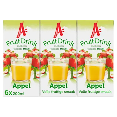 Ingrediënten: Vruchtensap uit concentraat 66% (appel 63%, citroen), water, vloeibare MELKbestanddelen (MELKpermeaat) 10%, ROOM <lt/>0,1%, stabilisator (pectine), natuurlijk appel aroma, zoetstof (steviolglycosiden uit Stevia)