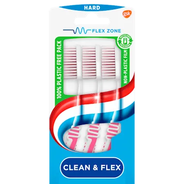 Poets je tanden en kiezen grondig en spaar je tandvlees met de afgeronde borstelharen. De Aquafresh Clean & Flex tandenborstel reinigt dankzij de afgeronde borstelharen je tanden en kiezen grondig , waarbij de Flex Zone en Ball Joint helpen de druk op je tandvlees tijdens het poetsen te controleren om het tandvlees te beschermen. <lt/>br<gt/><lt/>br<gt/>De flexibele steel helpt beschadiging van je tandvlees en tandvleeshalzen, als gevolg van te hard poetsen, voorkomen. De tandenborstel verwijdert tandplak en is zacht voor je tandvlees.<lt/>br<gt/><lt/>br<gt/><lt/>strong<gt/>Let op:<lt/>/strong<gt/> de tandenborstels zijn beschikbaar in verschillende kleuren. De kleur die je ontvangt is niet van te voren te bepalen en kan afwijken van de afbeelding.