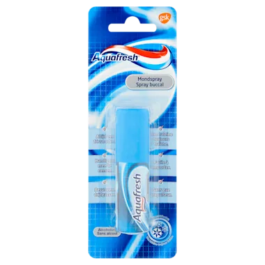 Mondspray Altijd een frisse adem Aquafresh mondspray geeft je direct de zekerheid van een frisse adem. Handig mee te nemen en overal te gebruiken.