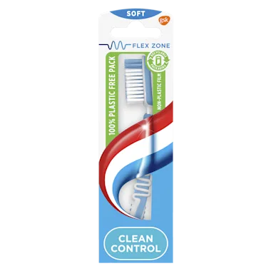 De Aquafresh Clean Control Soft tandenborstel past zich aan de vorm van je gebit en de unieke gepatenteerde flexibele zone helpt beschadingen van tandvlees en tandvleesshalzen, als gevolg van te hard borstelen, voorkomen. De afgeronde borstelharen van de tandenborstel reinigen tanden en kiezen grondig en sparen het tandvlees. De comfortabele ergonomische antislip rubbere greep van de tandenborstel zal hierbij helpen tijdens het poetsen, verlies geen grip tijdens het poetsen.