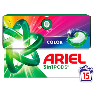 Ariel 3in1 PODS wasmiddelcapsules Color bieden onberispelijke vlekverwijdering in 1 wasbeurt. Ze zijn ontworpen om briljant te werken, zelfs in koudere cycli, en lossen snel op, zelfs in koud water, en bieden onberispelijke resultaten en een frisse, langdurige geur. Koude wasprogramma's helpen ook om je kleuren en stoffen langer te beschermen (vergeleken met warmwatercycli). Voor het beste resultaat, Pods eerst achterin de lege trommel en doe je je kleding er bovenop. Ariel 3in1 PODS worden ook in Frankrijk gemaakt. Om meer te weten te komen over ons merk en het verhaal achter ons product & onze ervaring met koud wassen, ga naar enviedeplus.com of zininmeer.be. Bewaar de Ariel 3in1 PODS wasmiddelcapsules altijd buiten het bereik van kinderen. Ga naar keepcapsfromkids.eu voor meer informatie.