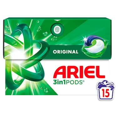 Ariel 3in1 PODS wasmiddelcapsules Original bieden onberispelijke vlekverwijdering in 1 wasbeurt. Ze zijn ontworpen om briljant te werken, zelfs in koudere cycli, en lossen snel op, zelfs in koud water, en bieden onberispelijke resultaten en een frisse, langdurige geur. Koude wasprogramma's helpen stoffen langer te beschermen (vergeleken met warmwatercycli). Voor het beste resultaat, Pods eerst achterin de lege trommel en doe je je kleding er bovenop. Ariel 3in1 PODS worden ook in Frankrijk gemaakt. Om meer te weten te komen over ons merk en het verhaal achter ons product & onze ervaring met koud wassen, ga naar enviedeplus.com of zininmeer.be. Bewaar de Ariel 3in1 PODS wasmiddelcapsules altijd buiten het bereik van kinderen. Ga naar keepcapsfromkids.eu voor meer informatie.