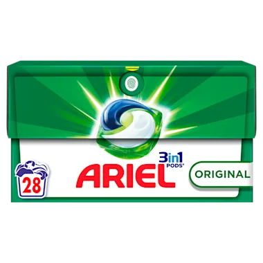 Ariel 3in1 PODS wasmiddelcapsules Original lossen snel op, zelfs in koud water, en leveren onberispelijke resultaten bij koude en korte programma's. Was kouder : kouder wassen helpt om elektriciteit en dus CO2 te besparen. Het helpt ook stoffen langer te beschermen (in vergelijking met wasprogramma's met warm water). Ariel PODS worden ook in Frankrijk gemaakt. Let op: Dit product kan schadelijk zijn en ernstige verwondingen veroorzaken. Houd de Ariel 3in1 PODS wasmiddelcapsules altijd buiten het bereik van kinderen. Bezoek keepcapsfromkids.eu voor meer informatie.
