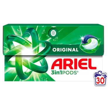 Ariel 3in1 PODS wasmiddelcapsules Original bieden onberispelijke vlekverwijdering in 1 wasbeurt. Ze zijn ontworpen om briljant te werken, zelfs in koudere cycli, en lossen snel op, zelfs in koud water, en bieden onberispelijke resultaten en een frisse, langdurige geur. Koude wasprogramma's helpen stoffen langer te beschermen (vergeleken met warmwatercycli). Voor het beste resultaat, Pods eerst achterin de lege trommel en doe je je kleding er bovenop. Ariel 3in1 PODS worden ook in Frankrijk gemaakt. Om meer te weten te komen over ons merk en het verhaal achter ons product & onze ervaring met koud wassen, ga naar enviedeplus.com of zininmeer.be. Bewaar de Ariel 3in1 PODS wasmiddelcapsules altijd buiten het bereik van kinderen. Ga naar keepcapsfromkids.eu voor meer informatie.