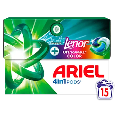 ONBERISPELIJK SCHOON + TOUCH OF LENOR UNSTOPPABLES COLOR: Ariel 4in1 PODS wascapsules bieden 7 dagen langdurige frisheid (in de kast)