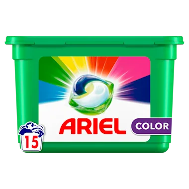 Ariel All-in-1 PODS vloeibaar wasmiddel wastabletten Kleur biedt uitstekende vlekverwijdering, vanaf de eerste wasbeurt, zelfs bij lagere temperaturen. Ze bieden uitzonderlijke reiniging in een kleine wasmiddelcapsule 1. Verwijderen vlekken 2. Beschermen kleuren 3. Verfrissen 4. Beschermen stoffen 5. Ontworpen voor koudere temperaturen dankzij de COOL CLEAN-technologie. Ariel wastabletten hebben een smart multi-ontwerp met meerdere compartimenten die de ingrediënten gescheiden houden tot ze de was bereiken. Bij contact met water lost het laagje op om krachtige vlekverwijderende technologieën vrij te geven en Ariel's diepste en sterkste reiniging van All-in-1 PODS Kleur ooit te bieden. Daarnaast worden de Ariel All-in-1 PODS wasmiddelcapsules geleverd in een recyclebare verpakking.