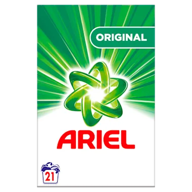 Ariel Original waspoeder met anti-residu technologie staat garant voor een uitstekende reiniging met Ariel op lagere temperaturen . De innovatieve formule lost snel op bij contact met water, wordt direct actief en dringt diep door in de vezels voor een uitstekende reiniging, zelfs op lagere temperaturen. Koude wasprogramma's helpen stoffen langer te beschermen vergeleken met wasprogramma's met warm water. Verlaag je wastemperatuur naar 30 °C en bespaar tot 60% energie! (Energieverbruik van wasmachine bij verlaging van 60 °C naar 30 °C, normaal wasprogramma.) Ariel Original waspoeder heeft bovendien een unieke anti-residu technologie die helpt poederresten te voorkomen.