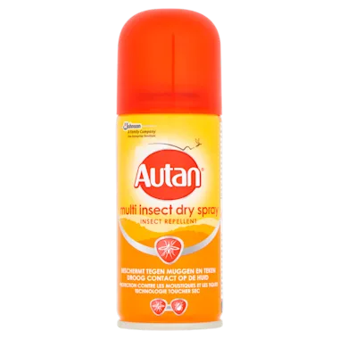 Autan Multi Insect Dry Spray weert muggen direct af tot 8 uur na aanbrengen. Weert ook direct teken af tot 8 uur na aanbrengen.