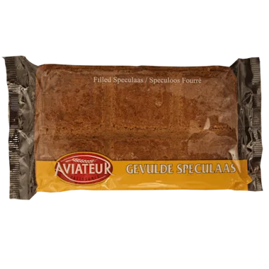 Ingrediënten: suiker, TARWEBLOEM, SOJABONEN, plantaardige oliën (palm, raapzaad, kokos), gemodificeerd aardappelzetmeel, glucose-fructose-stroop, speculaaskruiden en -specerijen (bevat koriander), dextrose, rijsmiddel: E450, E500, E503; stabilisator: sorbitol, verdikkingsmiddel: guargom, pectine; zout, kleurstof: karamel, abrikozenpitten, emulgator: SOJALECITHINE, MELKEIWIT, invertsuiker, LACTOSE, aroma (bevat MELK). Kan mogelijk sporen van EI en NOTEN bevatten.