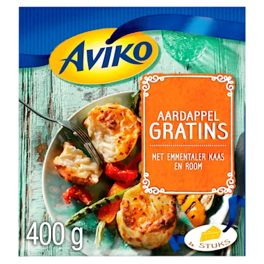 Deze Aviko aardappelgratins zijn een heerlijke combinatie van aardappelschijfjes, room en Emmentaler Kaas. De aardappelgratins zijn goed te combineren met vlees/vis en groenten/salade. Door hun krokante korst en romige smaak geven ze een bijzonder smaakvol tintje aan de maaltijd. Ze zijn eenvoudig te bereiden in de oven. Hiermee maak je echt indruk aan tafel!