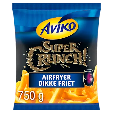 Aviko Dikke Friet SuperCrunch voor de Airfryer zijn speciaal ontwikkeld voor bereiding in de airfryer. Deze Airfryer friet is extra dik en super knapperig. Onze aardappelen worden met zorg geselecteerd en verwerkt. Aardappelen bevatten belangrijke voedingsstoffen zoals koolhydraten, vezels, eiwitten en mineralen Aviko biedt voor elke dag inspiratie voor de avondmaaltijd. Hoe ziet jouw kookweek eruit? Kijk op www.aviko.nl voor verrassende kookweekrecepten.