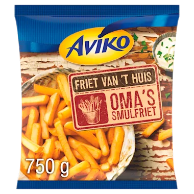 De Aviko smulfriet van oma wordt gemaakt van grofgesneden aardappelen. Door de lekkere, volle smaak van de aardappel proeft het alsof je de patat helemaal zelf gemaakt hebt. Onze aardappelen worden met zorg geselecteerd en verwerkt. Aardappelen bevatten belangrijke voedingsstoffen zoals koolhydraten, vezels, eiwitten en mineralen Aviko biedt voor elke dag inspiratie voor de avondmaaltijd. Hoe ziet jouw kookweek eruit? Kijk op www.aviko.nl voor verrassende kookweekrecepten.