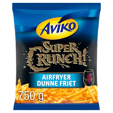 Aviko Dunne Friet SuperCrunch voor de Airfryer zijn speciaal ontwikkeld voor bereiding in de airfryer. Deze Airfryer friet is extra krokant, lang en dun, speciaal voor de fijnproevers. Onze aardappelen worden met zorg geselecteerd en verwerkt. Aardappelen bevatten belangrijke voedingsstoffen zoals koolhydraten, vezels, eiwitten en mineralen Aviko biedt voor elke dag inspiratie voor de avondmaaltijd. Hoe ziet jouw kookweek eruit? Kijk op www.aviko.nl voor verrassende kookweekrecepten.
