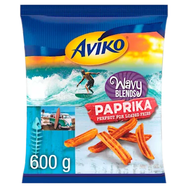 Aviko Wavy Blends Paprika is met haar krokante golvende vorm de perfecte friet voor loaded fries of om te dippen in jouw favoriete saus. Ideaal om te delen met vrienden en familie of om jezelf te verwennen. Dankzij de golvende vorm en krokante textuur zijn deze frieten ideaal voor loaded fries. Beleg ze met je favoriete toppings zoals gesmolten kaas, spek, jalapeños en een romige saus voor een ultieme smaakexplosie. De stevige structuur zorgt ervoor dat de friet de toppings perfect vasthoudt zonder slap te worden.