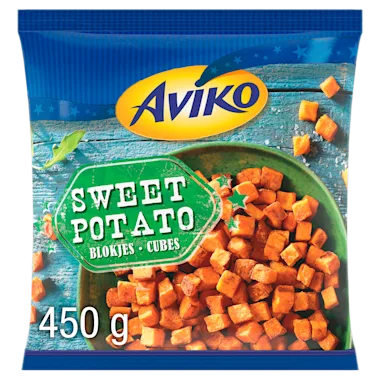 Aviko Zoete Aardappel Blokjes is voor iedereen die houdt van de kenmerkende zoete smaak en zachte structuur van zoete aardappel. Gebruik de aardappel blokjes om een heerlijke ovenschotel te maken. Onze zoete aardappelen worden met zorg geselecteerd en verwerkt. Zoete aardappelen zijn een bron van vezels en rijk aan B-caroteen, een vorm van vitamine A. B-caroteen is een antioxidant en geeft de knol die herkenbare oranje kleur. Aviko biedt voor elke dag inspiratie voor de avondmaaltijd. Hoe ziet jouw kookweek eruit? Kijk op www.aviko.nl voor verrassende kookweekrecepten.