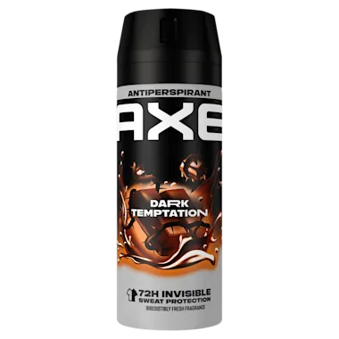 De AXE Dark Temptation Anti-Transpirant Spray garandeert langdurig droge oksels. Dus het maakt niet uit wie er op je pad komt, je bent er 100% klaar voor. Bovendien krijg je die onweerstaanbare geur van chocolade met een vleugje kruiden waardoor je frisser bent, de hele dag door. Dezelfde opwindende AXE Dark Temptation-geur met een vernieuwde, frisse nieuwe look. Maar wat erin zit, doet er ook toe. Onze formule houdt je oksels droog en superfris en geeft je tot wel 72 uur lang bescherming tegen zweet. De hele dag, de hele nacht – wat er ook gebeurt. Je voelt je fris, droog en op je best, waar en wanneer je maar wilt.