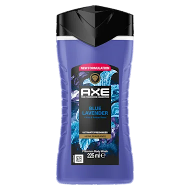 AXE Fine Fragrance Collection Blue Lavender Douchegel zorgt voor een verfrissende en relaxte verzorging en reiniging van je lichaam en laat je tot wel 12 uur lang onweerstaanbaar ruiken. Deze premium douchegel met de geur van lavendel, mint en amber ruikt als een luxe parfum! De frisse douchegel heeft een intense en langdurige geur, zo ruik je nog langer fris na het douchen. AXE Fine Fragrance Collection Blue Lavender Douchegel is een van de premium geuren uit onze AXE Fine Fragrance Collection-lijn. Dit assortiment met natuurlijke essentiële oliën is gecreëerd door meesterparfumeurs. Met deze premium geuren ruik je net zo onweerstaanbaar als met een luxe parfum. Geniet je van deze geur? Probeer dan ook eens de AXE Fine Fragrance Collection Blue Lavender Deodorant Bodyspray.