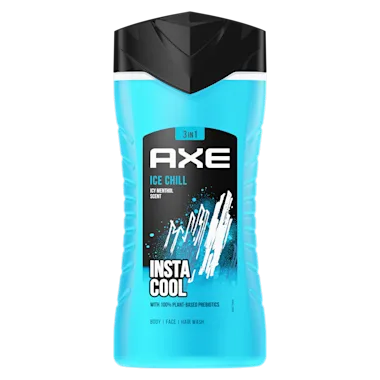 De AXE Ice Chill 3-in-1 Douchegel met de frisse geur van bevroren munt zorgt voor een verfrissende en relaxte verzorging en reiniging van je lichaam, gezicht en haar. De douchegel verwijdert bacteriën en laat je tot wel 12 uur lang onweerstaanbaar ruiken. AXE Ice Chill 3-in-1 Douchegel met toegevoegde moisturizers is dermatologisch getest en bevat 87% ingrediënten van natuurlijke oorsprong*. Met AXE-douchegel start je de dag of de avond goed. Geniet je van deze geur? Probeer dan ook eens de AXE Ice Chill Deodorant Bodyspray. De douchegel van Axe is verpakt in een 100% gerecyclede en recyclebare fles.