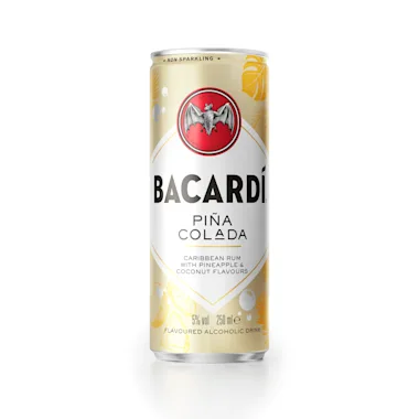 BACARDI Pina Colada is een gearomatiseerde rum cocktail met een fruitige, Caribische twist. Het is gemaakt met BACARDI Carta Blanca Rum, bruisend water, natuurlijke aroma's en echte ingrediënten.