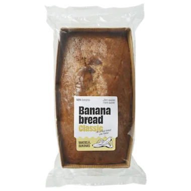 Ingrediënten: 41% bananenpuree, tarwebloem, suiker, zonnebloemolie, 6% walnoten, havermeel, citrusvezel, aardappelzetmeel, kaneel, zout, rijsmiddel (E500, E450), conserveermiddel (E282, E202), antoxidant (E300), antiklontermiddel (E572).