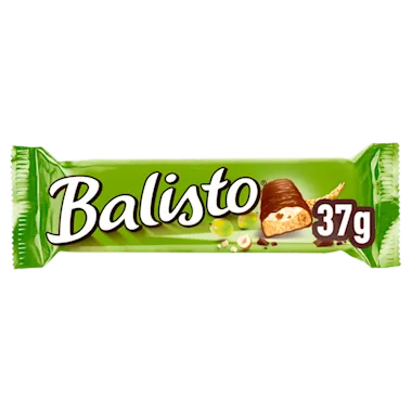 Biscuit met volkorenmeel (36%) en crème met hazelnootsmaak (1.9%) en rozijnen (6.8%), omhuld met melkchocolade (39%).