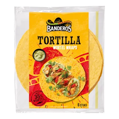 2. Verhit de tortilla’s gedurende 10 tot 15 seconden in de magnetron op 700W of bak beide zijden 10 tot 15 seconden in een droge pan.