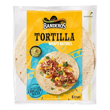 2. Verhit de tortilla's gedurende 10 tot 15 seconden in de magnetron op 700W of bak beide zijden 10 tot 15 seconden in een droge pan.