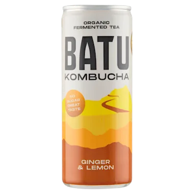Ingrediënten: NL *Biologisch, Water, kombucha cultuur*, gembersap* (3%), citroen* (0,25%), groene thee*, rietsuiker* (volledig omgezet tijdens het fermentatieproces), zwarte thee*, stevia*