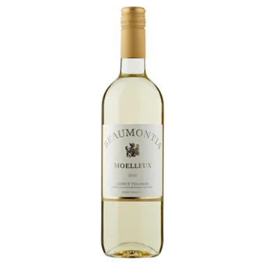 Zoete witte wijn. De term Moelleux op het etiket van deze wijn betekent letterlijk ‘mollig’. Het is een verwijzing naar het licht zoete karakter van deze wijn. Hij is afkomstig uit de regio Comté Tolosan, gelegen in het zuidwesten van Frankrijk, dicht bij de stad Toulouse. Hij wordt gemaakt van de druiven Colombard en Ugni Blanc. De druiven worden extra rijp geoogst en vervolgens worden niet alle suikers van het druivensap omgezet in alcohol. Hierdoor krijg je een wijn met een bescheiden alcoholpercentage en een zoete smaak.