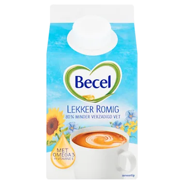 InformatieBecel Lekker Romig voor in de koffie:• bevat 80% minder verzadigd vet dan vergelijkbare koffiemelk• is een product met 4% plantaardige oliën waarvan 50% Omega 3 & 6• bevat vitamine E