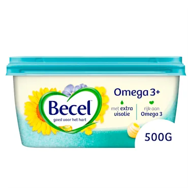 De mix van zonnebloem- en lijnzaadolie in Becel is van nature rijk aan Omega 3 en bevat van nature Omega 6 die goed zijn voor het hart.