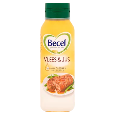 Becel Vlees & Jus is watervrij, spat niet en bruint snel. Blijf er dus eventjes bij. Zodra het begint te bruinen kan het vlees in de pan. Waarom is Becel goed voor het hart? De mix van zonnebloem-, koolzaad- en lijnzaadolie in Becel is van nature rijk aan Omega 3 en bevat van nature Omega 6 die goed zijn voor het hart. Ze dragen bij aan het behoud van een gezond cholesterolgehalte in het bloed. Becel Vlees & Jus bevat 3x meer Omega 3 dan olijfolie bij vergelijking van dezelfde producthoeveelheid.