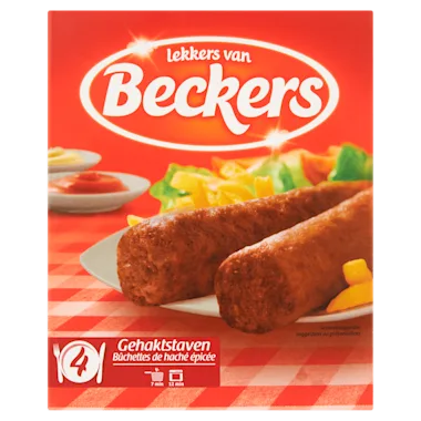 Deze gehaktspecialiteit van Beckers kenmerkt zicht door de pittige kruiding, de ambachtelijke vorm en de herkenbare grove structuur. Lekker tussendoor of bij de frietjes!