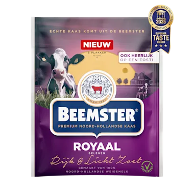 Beemster® Royaal Belegen is een kaas met een iets nootachtige, lichtzoete smaak. Deze kaas rijpt ongeveer 4 maanden op sparrenhouten planken en ontwikkelt in die tijd zijn unieke smaak. Beemster® kaas is bereid met 100% verse Noord-Hollandse weidemelk, lokaal gemaakt in de Beemster polder. Beemster® Royaal smelt heel goed. Hierdoor is de kaas niet alleen heerlijk op een broodje, het is ook bij uitstek geschikt om er een tosti of zelfs een ovenschotel mee te maken. Uniek in smaak en op meerdere manieren te gebruiken.