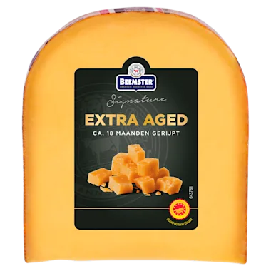 Beemster Extra Oud is een extra lange gerijpte kaas, en heeft een zilte, zeer rijke smaak, met heerlijke rijpingskristallen.