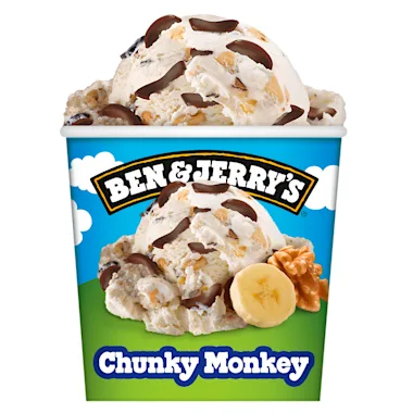 Ben & Jerry's Chunky Monkey IJs bestaat uit fairrukkelijke bananenroomijs gemaakt van super (h)eerlijke Fairtrade bananen, met walnoten en pure room. Gemaakt van zuivel van het duurzame 'Free Grazing' zuivelprogramma en gevuld met de lekkerste banaan-choco chunks. Ben & Jerry's maakt het best mogelijke ijs op de beste manier.