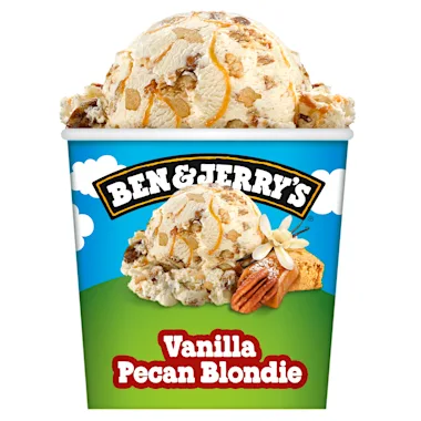 Ben & Jerry's Vanilla Pecan Blondie is gemaakt van vanille-ijs met gekarameliseerde pecannoten, stukjes blondie brownie-cake en een swirl van gezouten karamelsaus. Wij houden erg veel van pecannoten, en als je het ons vraagt, is dit de rijkste, vanille-ste, met perfect gekarameliseerde pecannoten, blondie brownieste, gezouten karamelswirlste van de hele wereld… en wat het allemaal nog wat lekkerder maakt, is dat dit ijsje ook nog eens gemaakt is met fairtradesuiker en -vanille! Kortom: We are totally nuts about it! En jij binnenkort ook! Je smaakpapillen mogen ons later bedanken!