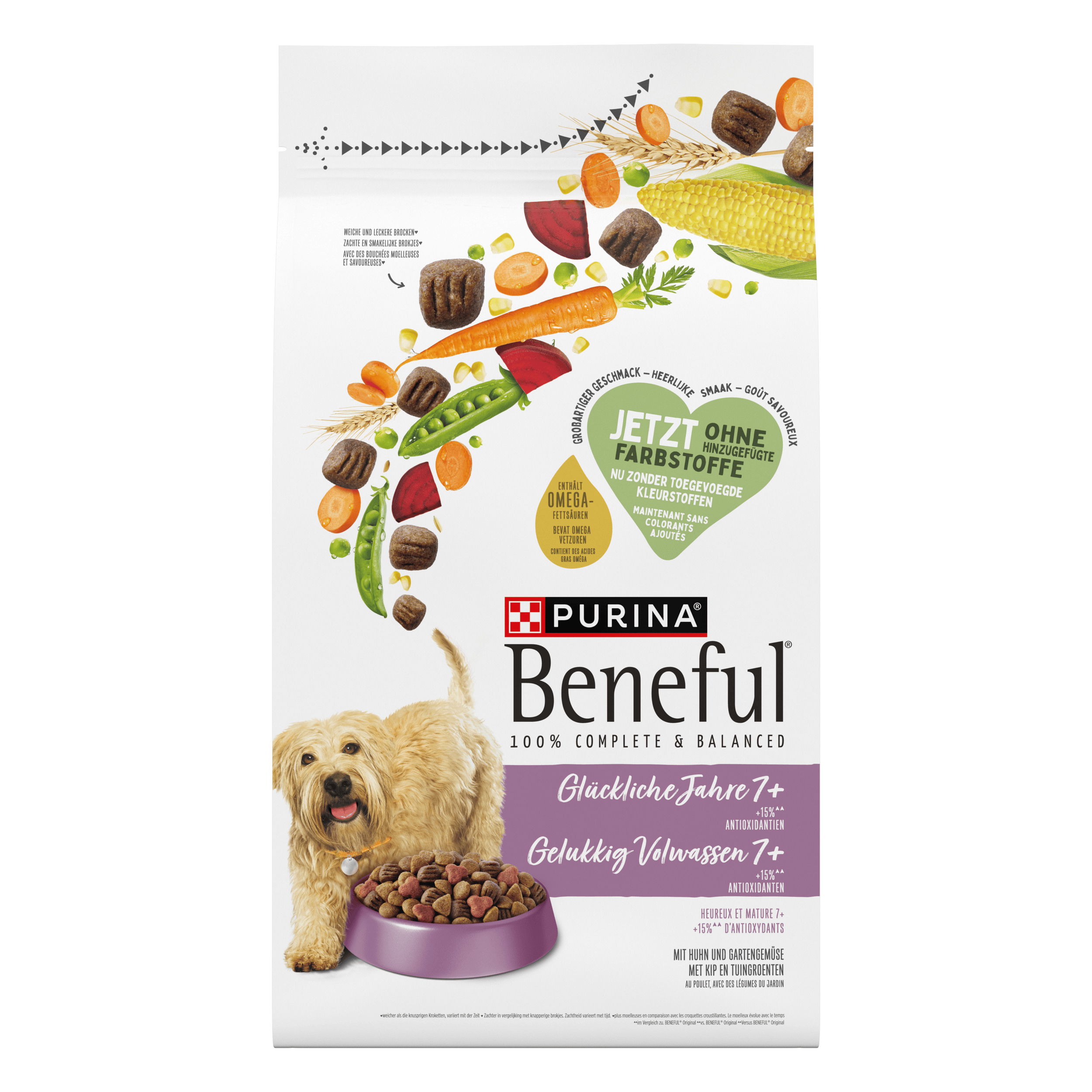 Wat maakt de dag van jouw beste vriend nog beter? Een fijne lange aai tussen de oren. Een zonnige middag in het park. Uitstrekken op de bank naast jou. Hij zal ook houden van de combinatie van voedzame ingrediënten in het BENEFUL Gelukkig Volwassen 7+ recept. Het is een zorgvuldig uitgebalanceerde maaltijd die jouw oudere hond helpt speels en actief te blijven. Het bevat een mix van knapperige brokjes en zachte stukjes voor een smaak en textuur waar je hond dol op zal zijn. Met BENEFUL maaltijden kun je helpen jouw vriend alles te geven smaak, goede voeding gezondheid en geluk! Zachter in vergelijking met knapperige brokjes. Zachtheid varieert met tijd
