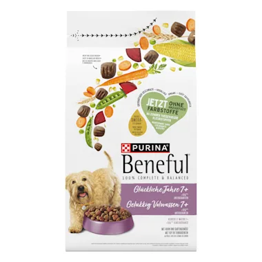 Wat maakt de dag van jouw beste vriend nog beter? Een fijne lange aai tussen de oren. Een zonnige middag in het park. Uitstrekken op de bank naast jou. Hij zal ook houden van de combinatie van voedzame ingrediënten in het BENEFUL Gelukkig Volwassen 7+ recept. Het is een zorgvuldig uitgebalanceerde maaltijd die jouw oudere hond helpt speels en actief te blijven. Het bevat een mix van knapperige brokjes en zachte stukjes voor een smaak en textuur waar je hond dol op zal zijn. Met BENEFUL maaltijden kun je helpen jouw vriend alles te geven smaak, goede voeding gezondheid en geluk! Zachter in vergelijking met knapperige brokjes. Zachtheid varieert met tijd