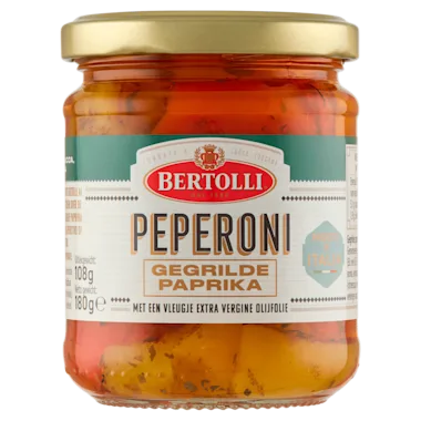 Bertolli wil al het goede uit de Italiaanse keuken toegankelijk maken. Peperoni Grigliate, Gegrilde Paprika op olie is onderdeel van een range Italiaanse groenten. Met deze rode en gele gegrilde paprika, met zichtbare grill-strepen, kleed je in een handomdraai je salade, Italiaanse borrelplank of pizza aan.