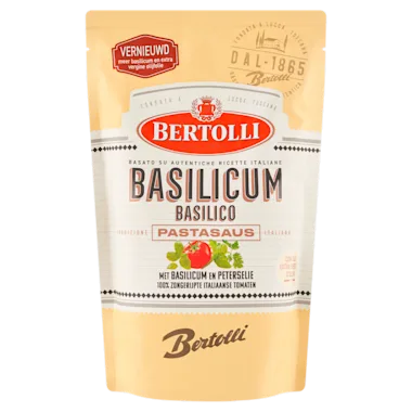 Bertolli Basilico Pastasaus is gebaseerd op een traditioneel Italiaans recept gemaakt met Italiaanse tomaten en basilicum, en extra olijfolie verkregen bij de eerste persing. Deze pastasaus is gemaakt op basis van een heerlijke ‘soffritto’ gemaakt van extra vergine olijfolie en kruiden. Het culinaire geheim voor het maken van een Bertolli Basilico Pastasaus is geïnspireerd op authentieke Italiaanse recepten. Een soffrito is een mengsel van kleingesneden groenten die zachtjes gegaard worden in olie. Deze zacht gegaarde groenten zijn de basis van de saus en geven de saus een intense en volle smaak.